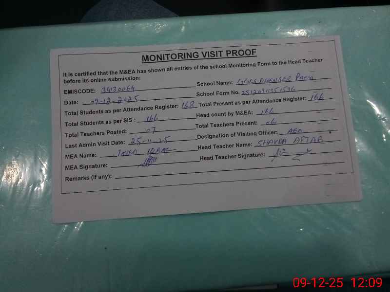 | Certified that this School was Inspected by the Undersigned MEA/DMO Today and the Information Stated Above is as Per Record. | |||||