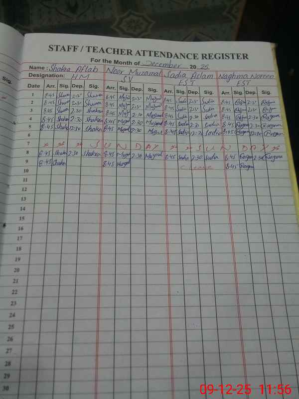 | Attendance Register | Head Teacher | MEA with School | Visit Proof |