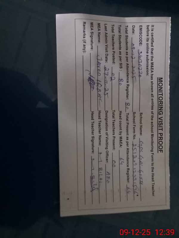 | Certified that this School was Inspected by the Undersigned MEA/DMO Today and the Information Stated Above is as Per Record. | |||||