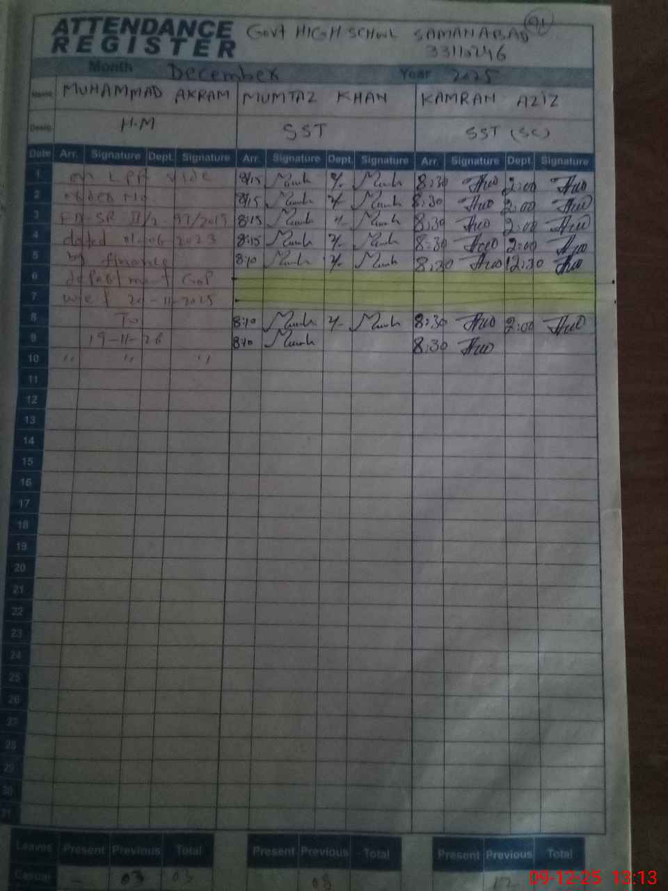 | Name: Mu**** Kh**** Designation: (School Headmaster's/Headmistress's) SST HM Phone/Cell Number: 03**** |