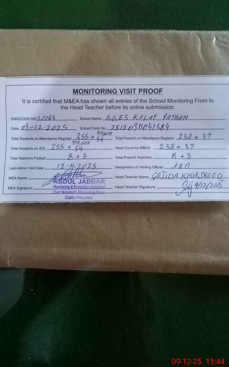 | EMIS Code: 39220063 | Name of School: GGES KALAY PATHAN | |||