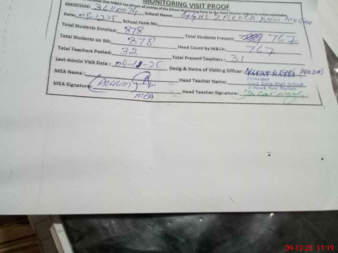 | EMIS Code: 36110074 | Name of School: GGHS Z BLOCK NEW MULTAN | |||