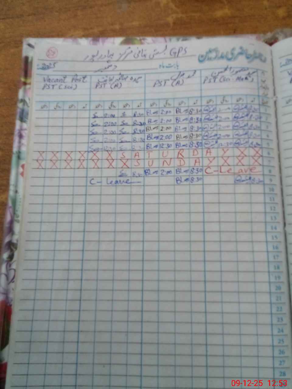 | CNIC | Full Name | Designation | R/C | Absence During Last Calender Month |