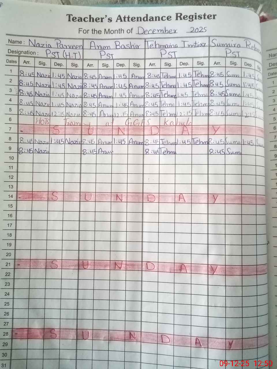 | CNIC | Full Name | Designation | R/C | Absence During Last Calender Month |