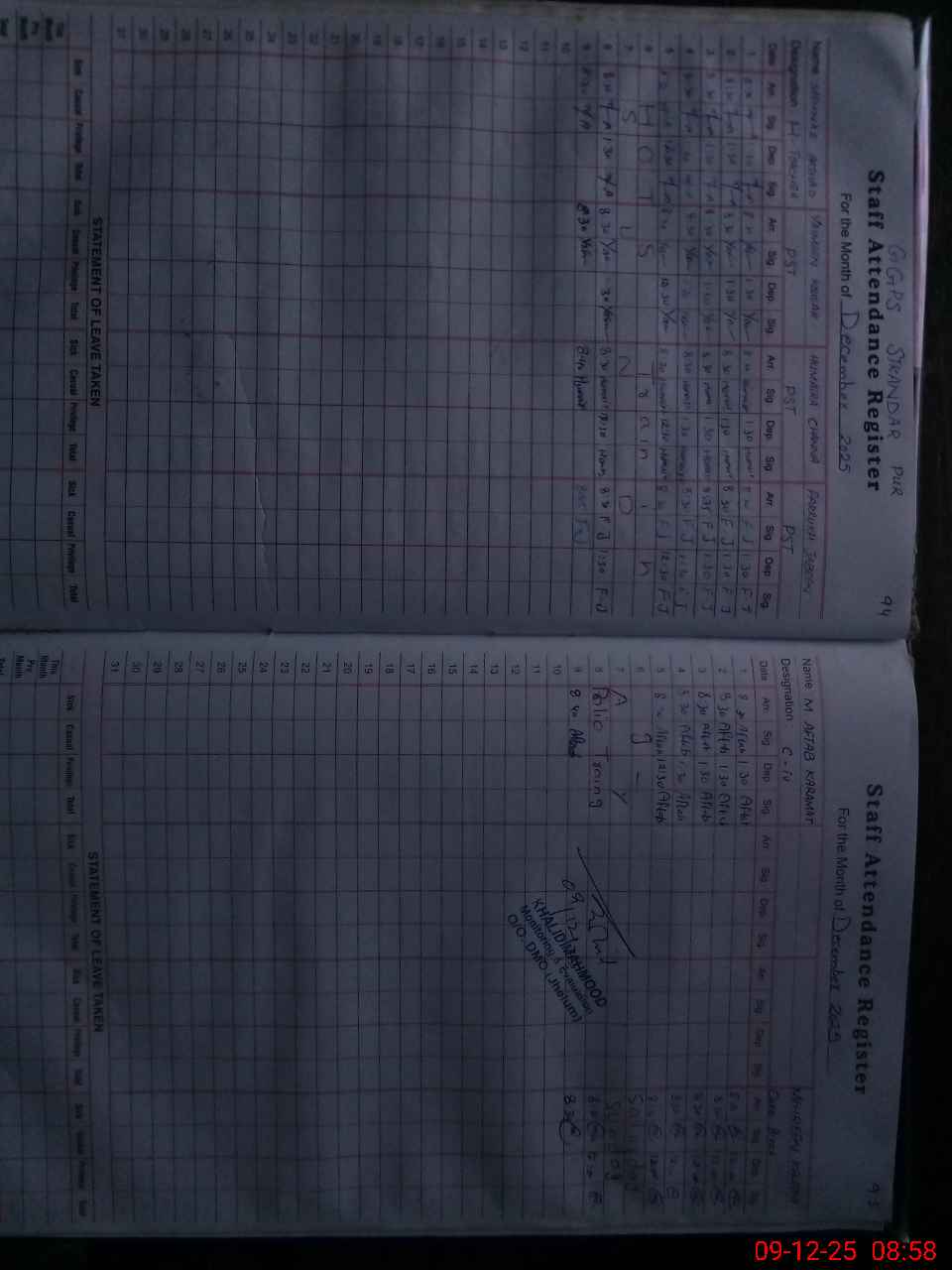 | CNIC | Full Name | Designation | R/C | Absence During Last Calender Month |