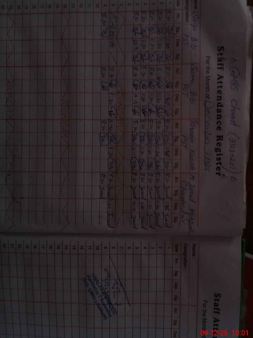 | CNIC | Full Name | Designation | R/C | Absence during last cal. month |