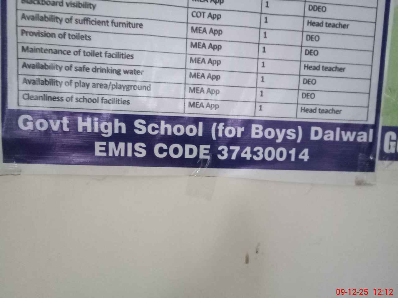 | EMIS Code: 37430014 | Name of School: GHS DALWAL | |||