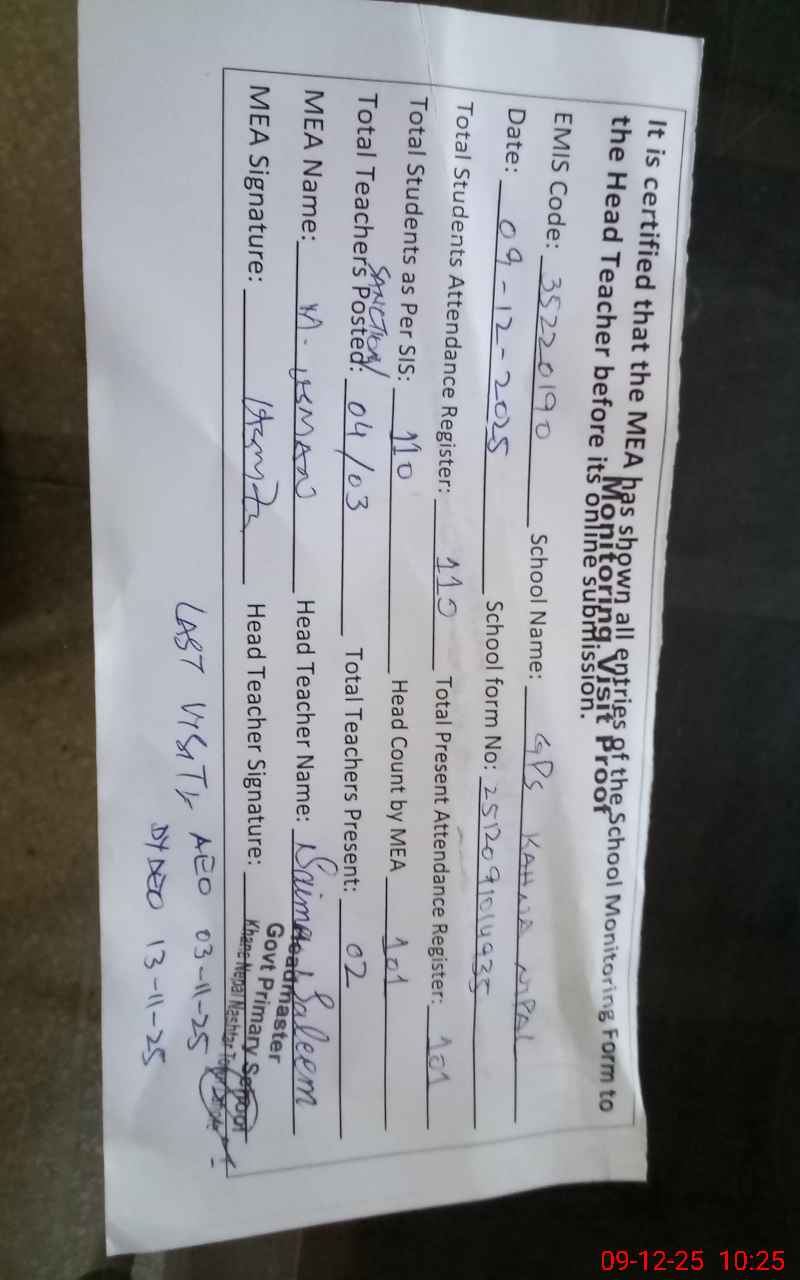 | EMIS Code: 35220190 | Name of School: GPS KAHNA NIPAL | |||