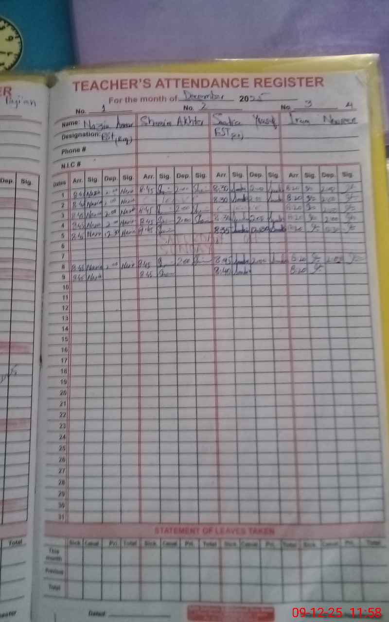 | CNIC | Full Name | Designation | R/C | Absence During Last Calender Month |