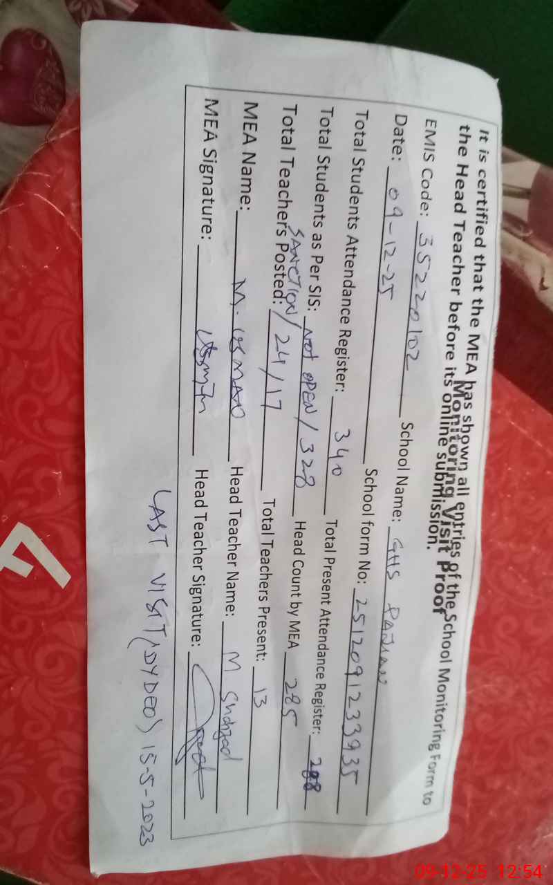| EMIS Code: 35220102 | Name of School: GHS PAJIAN(Newly upgraded) | |||
