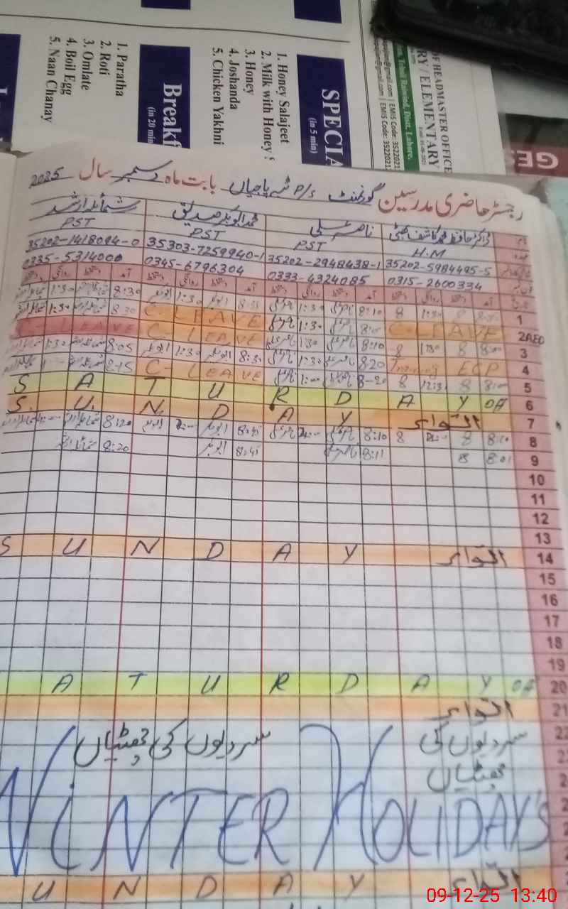 | Remarks (Use Separate Page if Required): Teacher named Muhammad Ali PST is suspended since 02Sep 2025 and now on temporary duty at GPS SHAIR SHAH D BLOCK But no letter received by school Head. Said teacher still showing suspend in school record | |||||