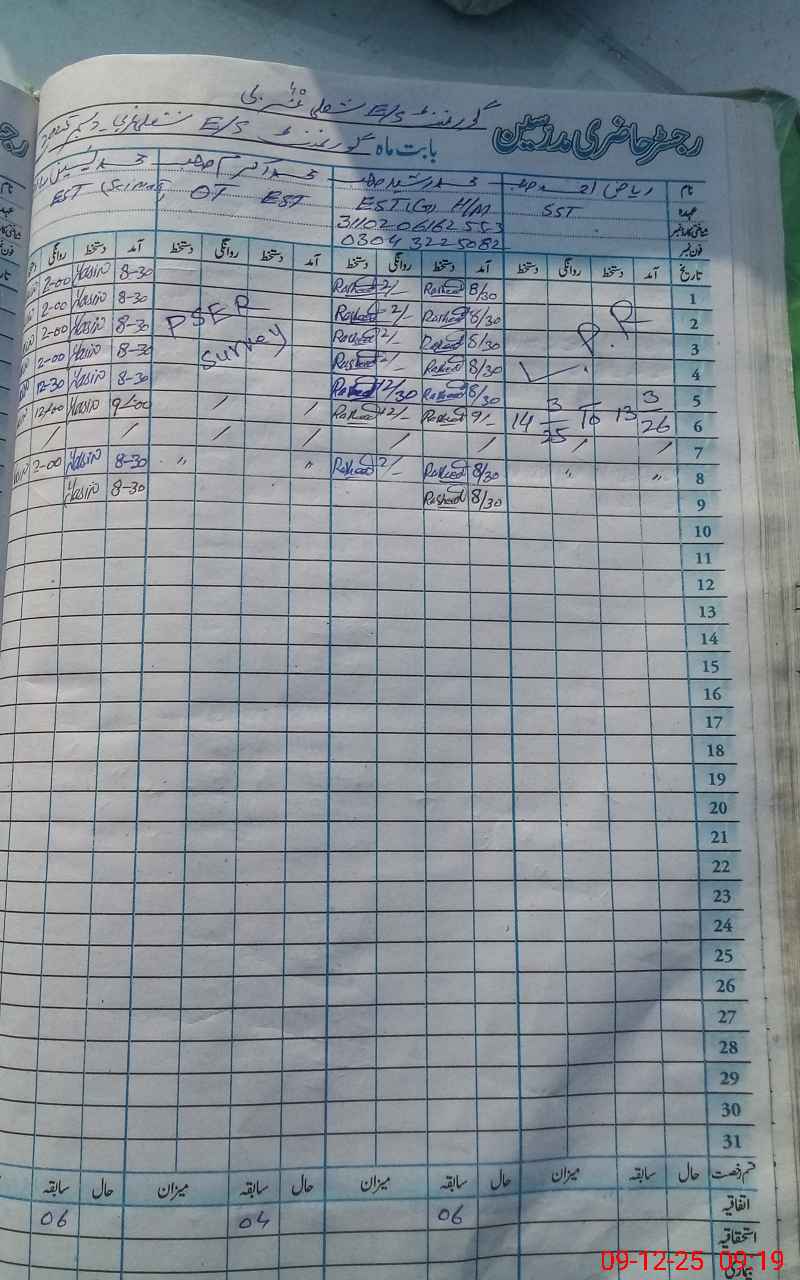 | CNIC | Full Name | Designation | R/C | Absence During Last Calender Month |