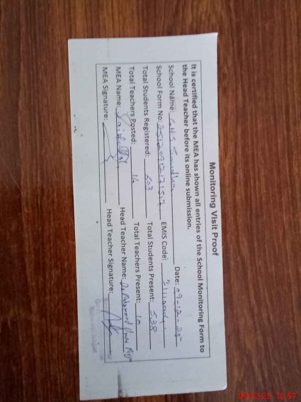 | EMIS Code: 31110004 | Name of School: GHS SONDHA | |||
