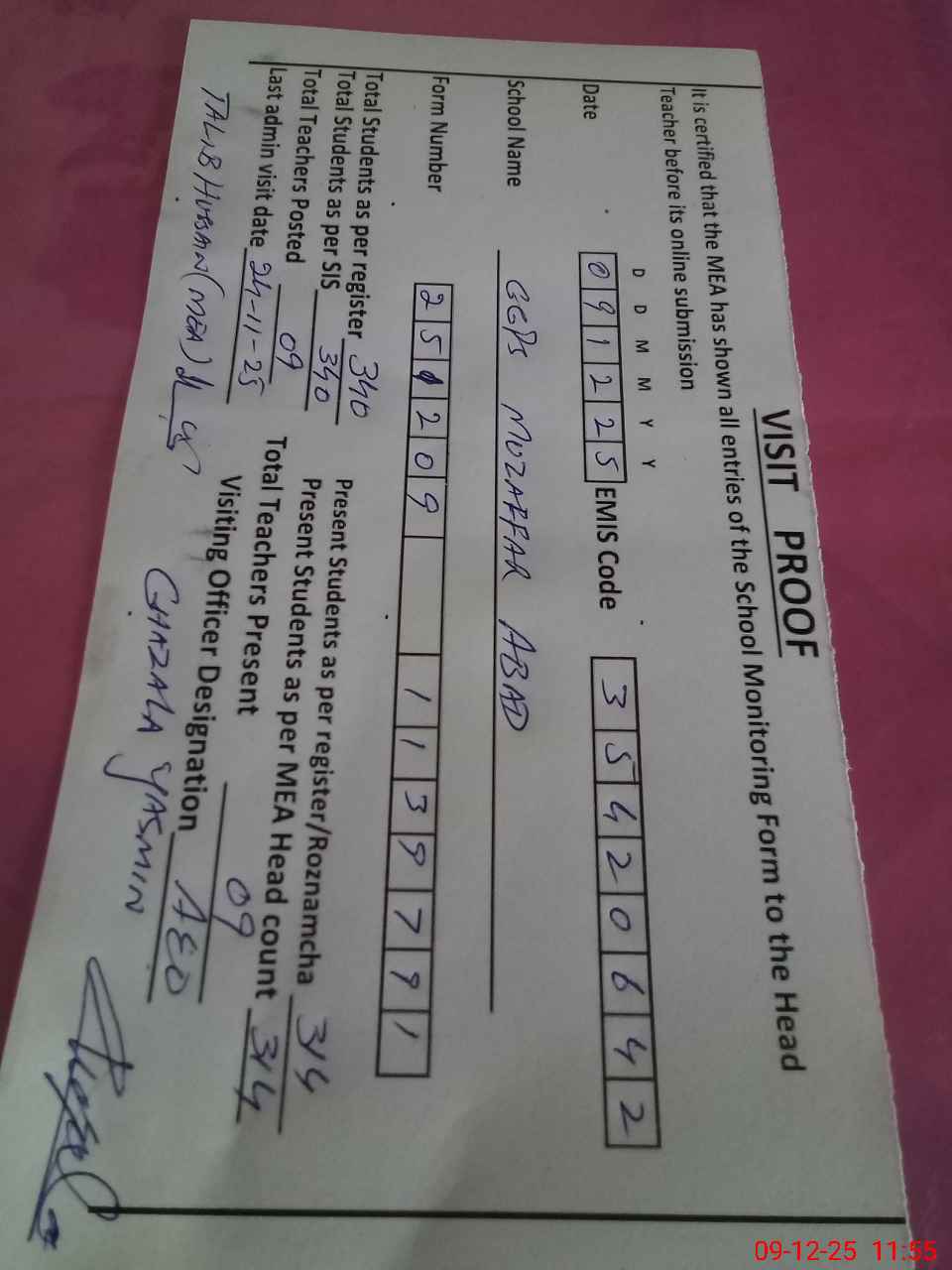 | EMIS Code: 35420642 | Name of School: GGPS MUZAFFAR ABAD | |||