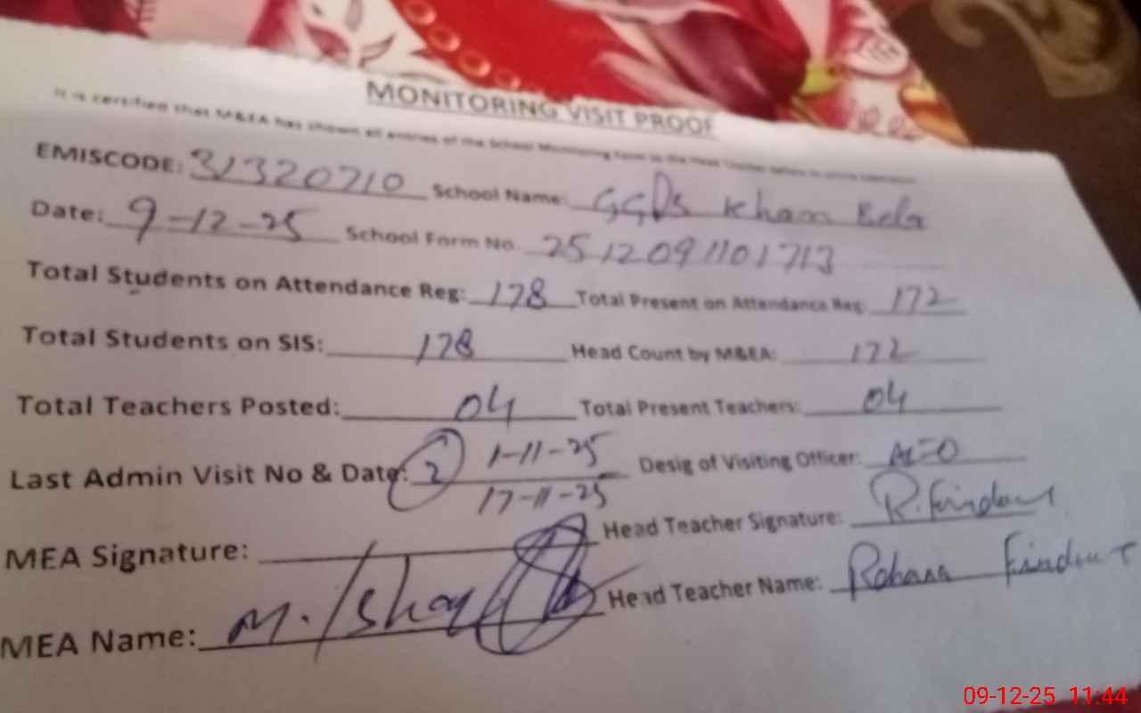 | EMIS Code: 31320710 | Name of School: GGPS MOUZA KHAN BELA | |||