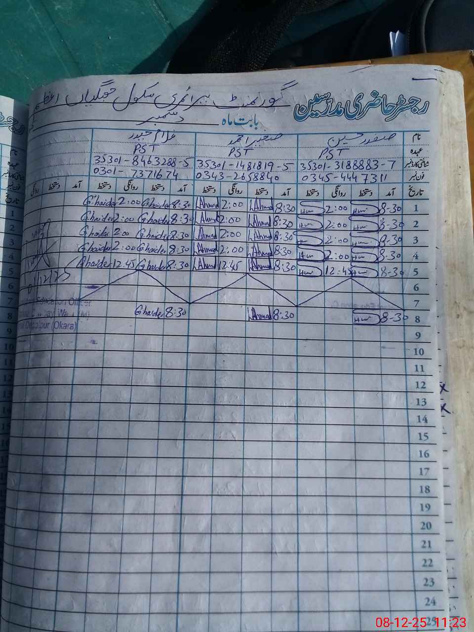 | Name: SA**** HU**** Designation: (School Headmaster's/Headmistress's) PST Phone/Cell Number: 03**** |