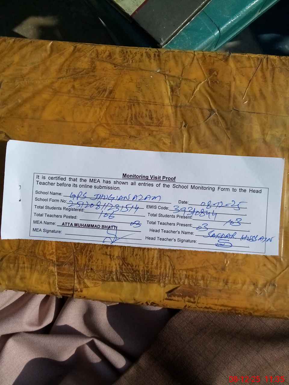 | Remarks (Use Separate Page if Required): Last admin visit by AEO on 01 Dec, 2025 | |||||