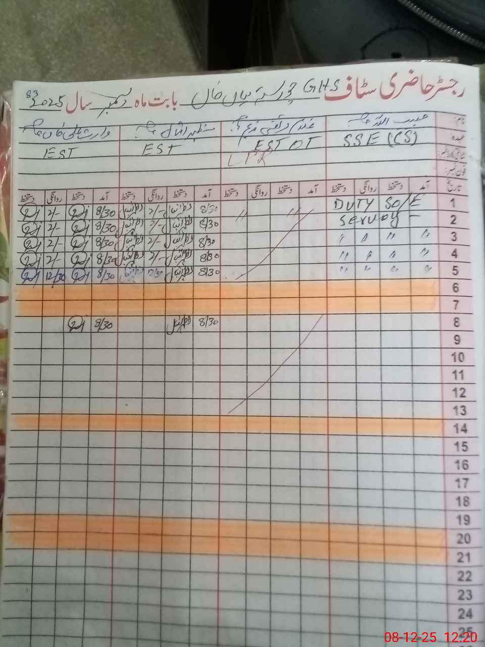 | CNIC | Full Name | Designation | R/C | Absence During Last Calender Month |