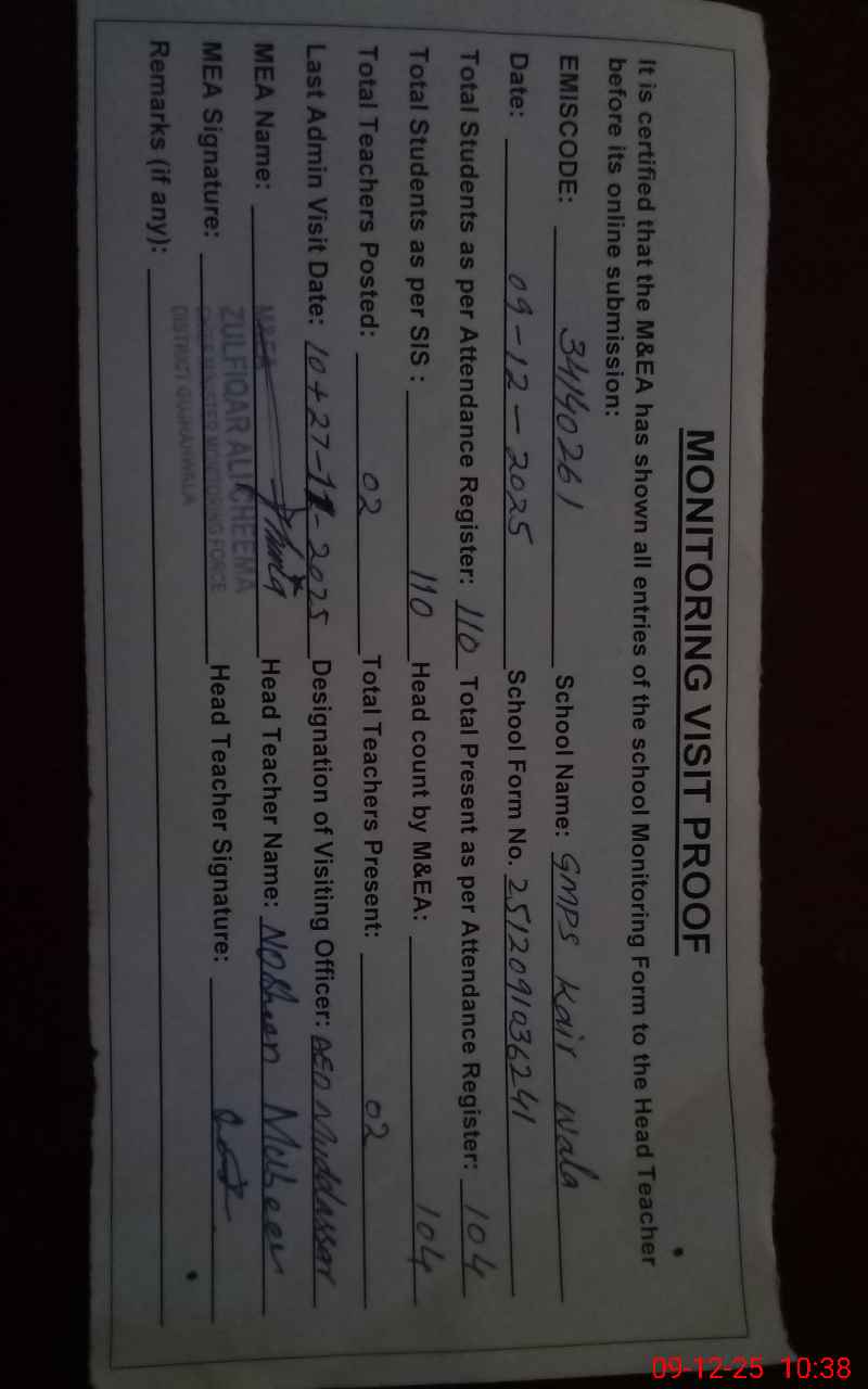| EMIS Code: 34140261 | Name of School: GMPS KAIR WALA | |||