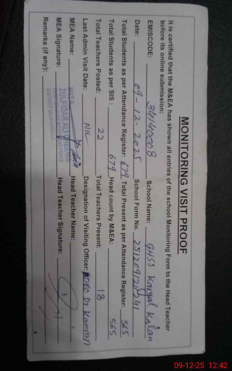 | EMIS Code: 34140008 | Name of School: GHSS KARYAL KALAN | |||
