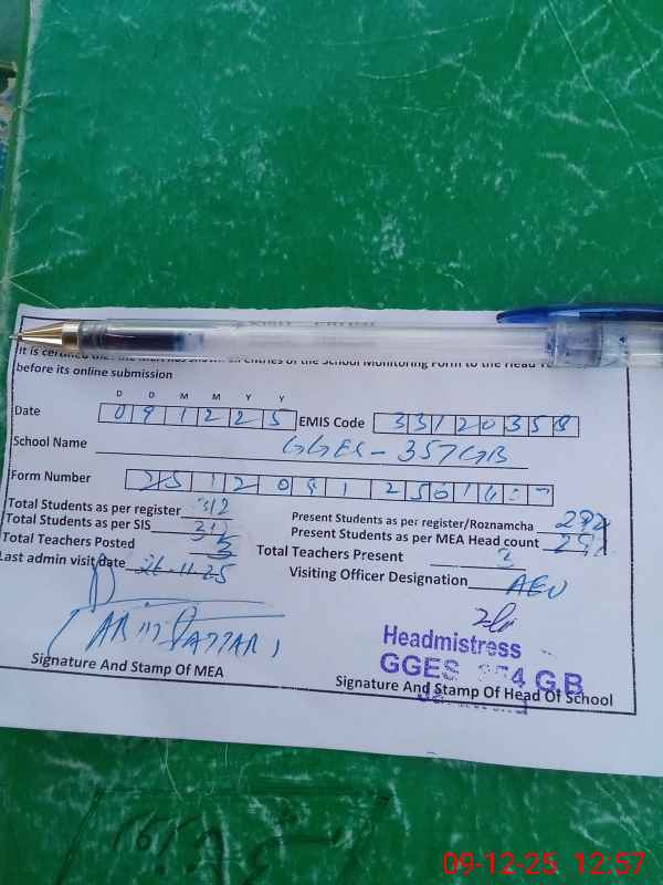 | Certified that this School was Inspected by the Undersigned MEA/DMO Today and the Information Stated Above is as Per Record. | |||||