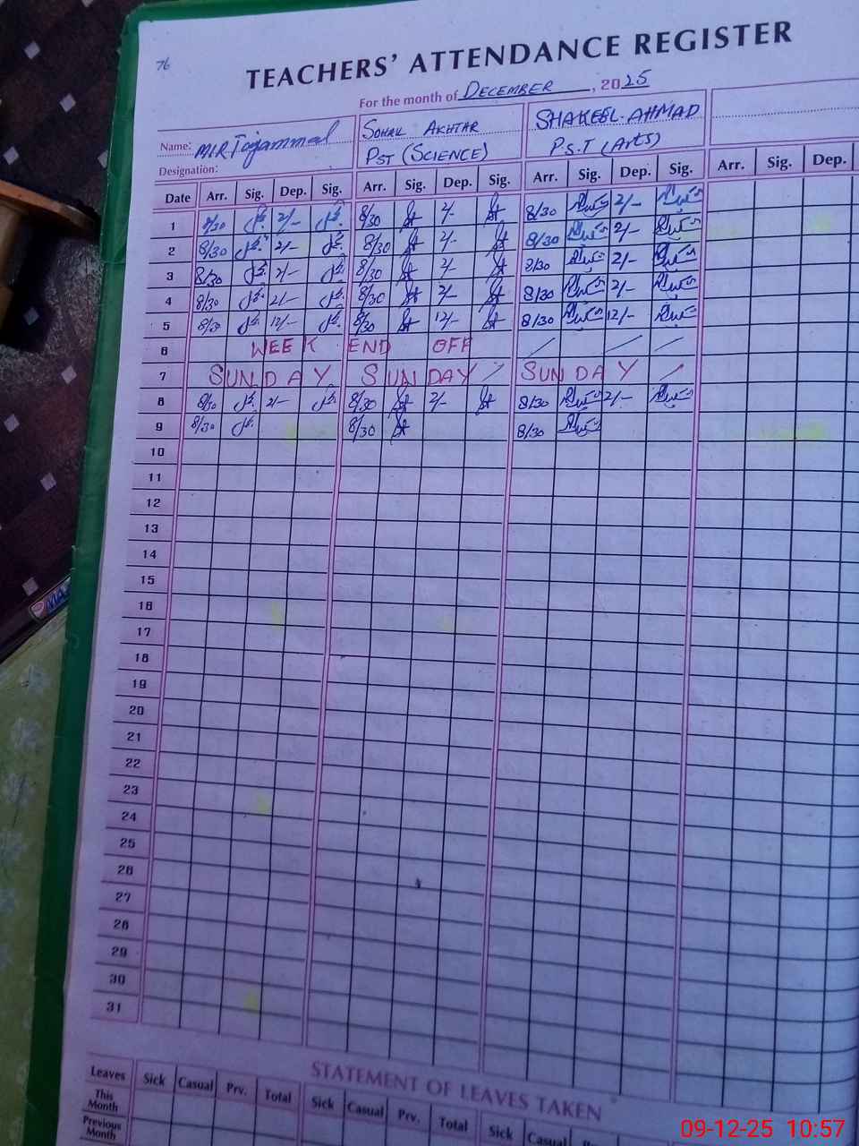 | CNIC | Full Name | Designation | R/C | Absence During Last Calender Month |