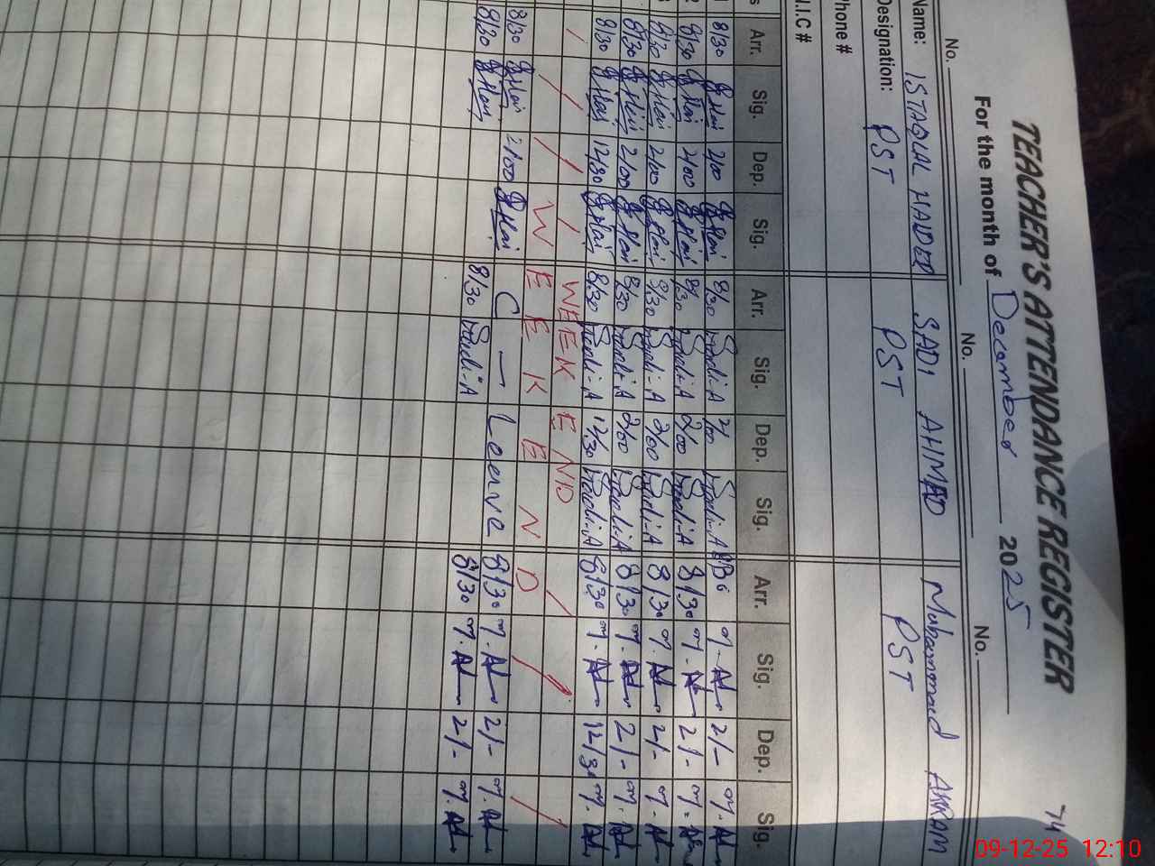 | Name: IS**** HA**** Designation: (School Headmaster's/Headmistress's) ESE (SCI MATH ) Phone/Cell Number: 03**** |