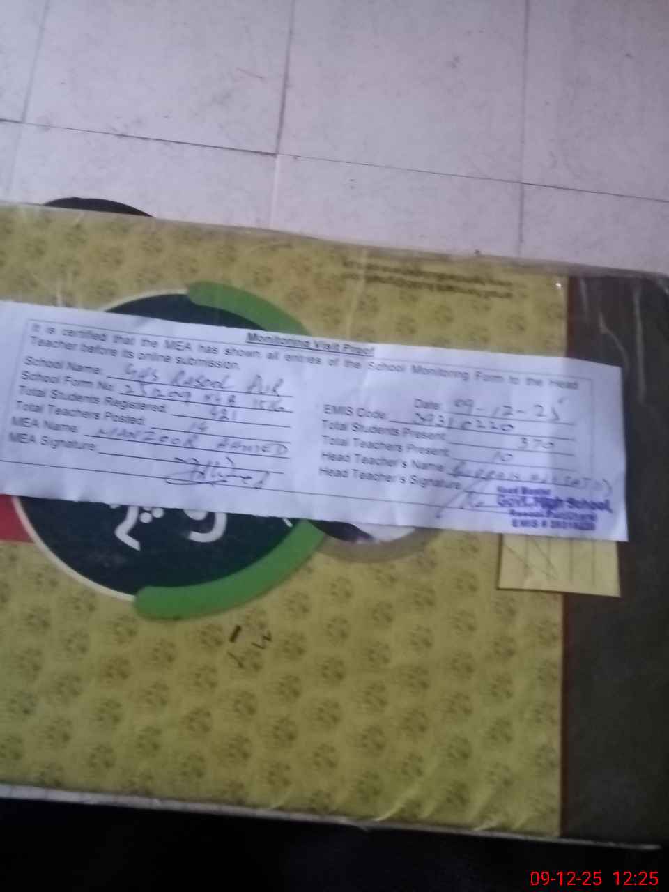 | Certified that this School was Inspected by the Undersigned MEA/DMO Today and the Information Stated Above is as Per Record. | |||||