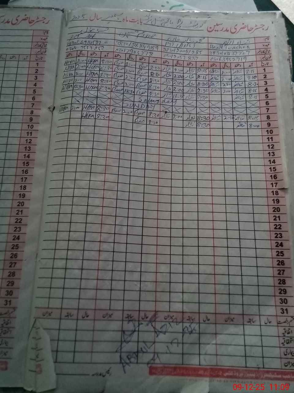 | CNIC | Full Name | Designation | R/C | Absence During Last Calender Month |