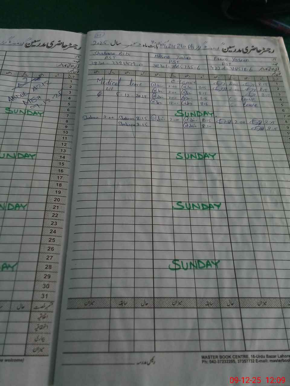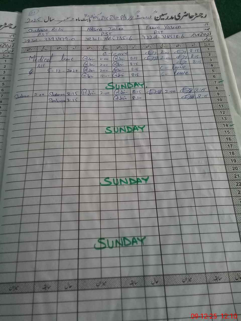 | CNIC | Full Name | Designation | R/C | Absence During Last Calender Month |