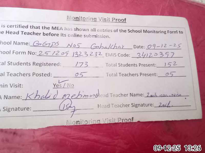 | EMIS Code: 34120397 | Name of School: GGPS GHAKHAR NO.5 | |||