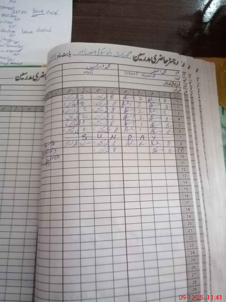 | CNIC | Full Name | Designation | R/C | Absence During Last Calender Month |