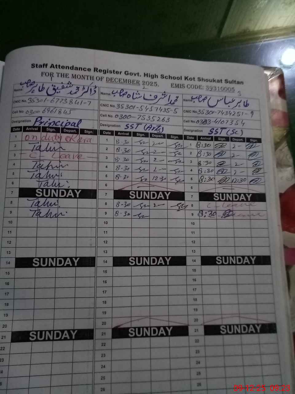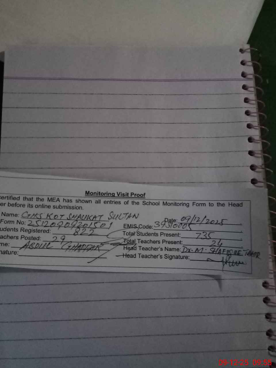| EMIS Code: 39310005 | Name of School: GHS KOT SHAUKAT SULTAN | |||
