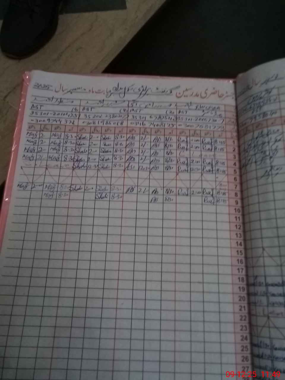 | CNIC | Full Name | Designation | R/C | Absence During Last Calender Month |