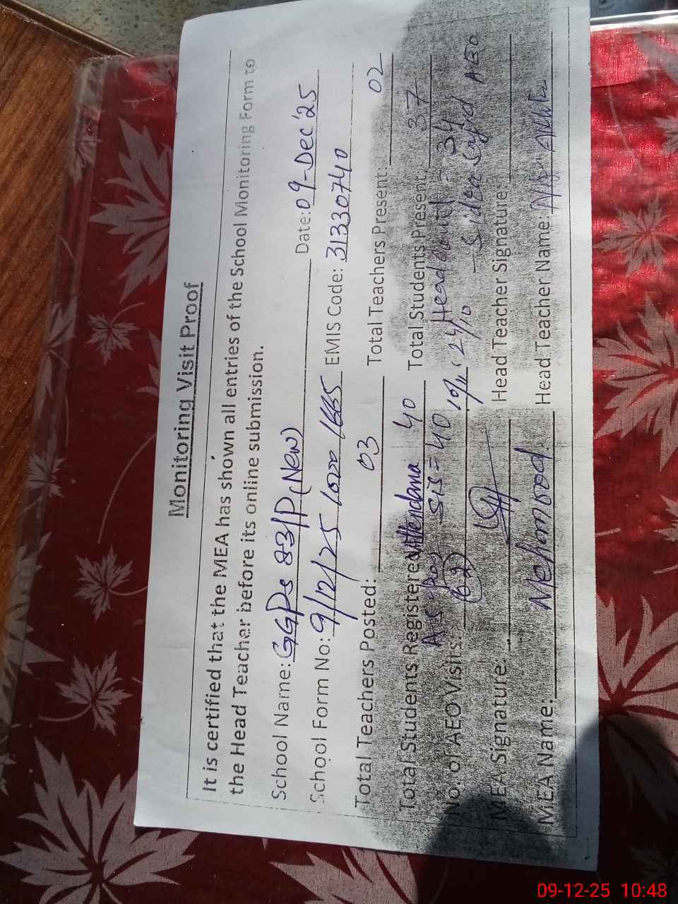 | EMIS Code: 31330740 | Name of School: GGPS CHAK NO. 83/P NEW | |||
