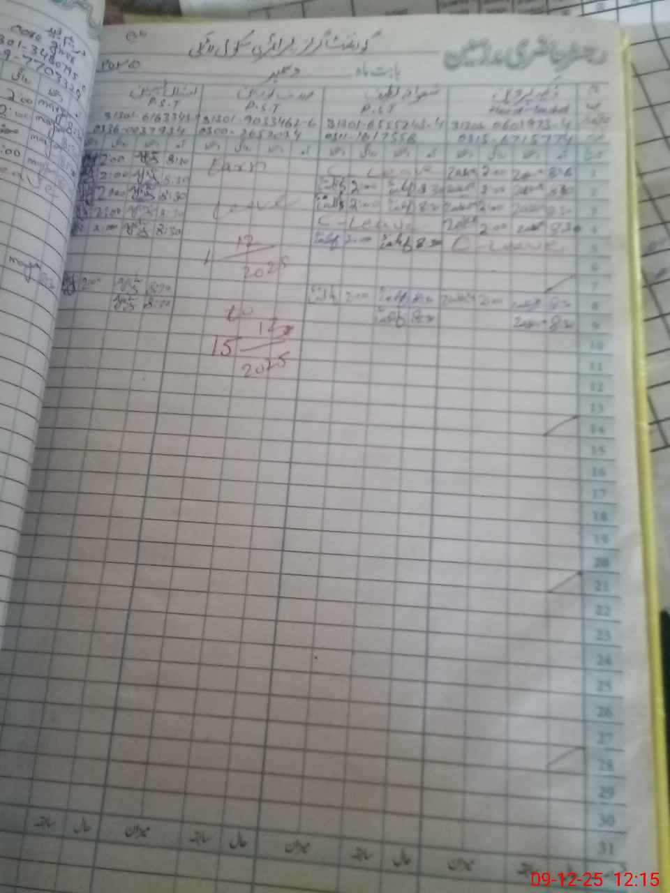 | CNIC | Full Name | Designation | R/C | Absence During Last Calender Month |