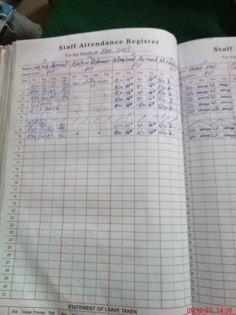 | CNIC | Full Name | Designation | R/C | Absence During Last Calender Month |