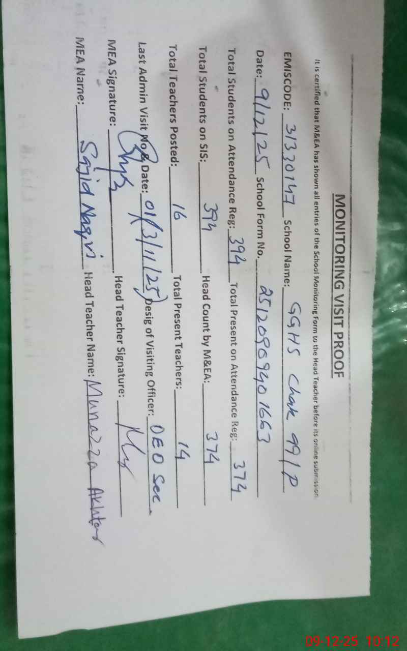 | EMIS Code: 31330147 | Name of School: GGHS CHAK NO. 99/P | |||
