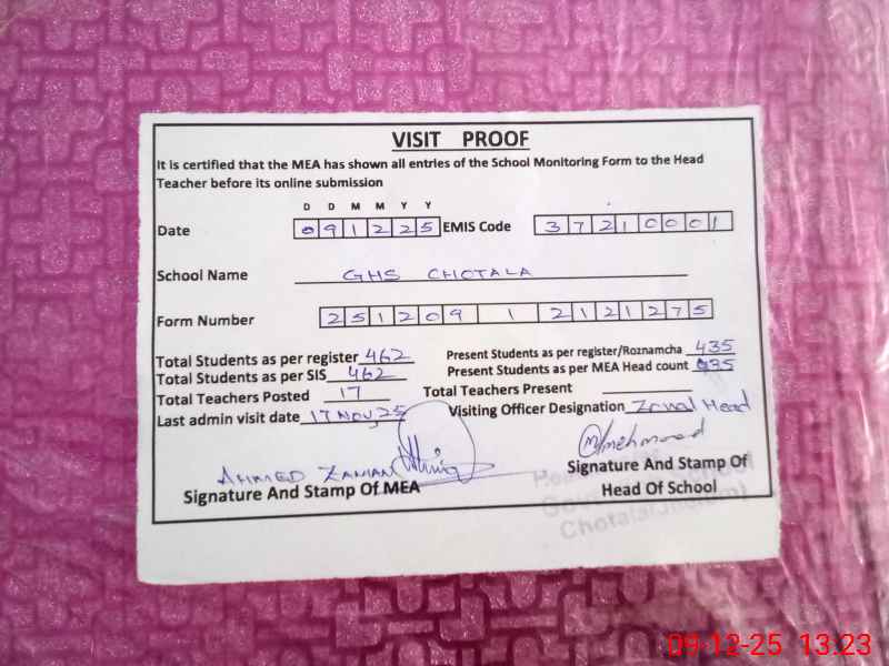 | EMIS Code: 37210001 | Name of School: GHS CHOTALA KHURD | |||