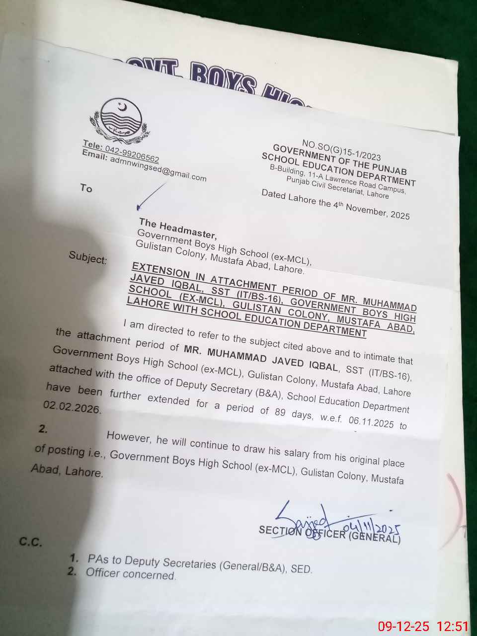 | Name: Gh**** Ab**** Designation: (School Headmaster's/Headmistress's) In charge Head Master Phone/Cell Number: 03**** |