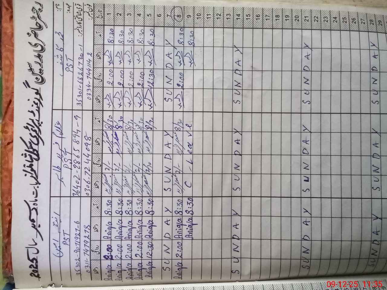 | CNIC | Full Name | Designation | R/C | Absence During Last Calender Month |