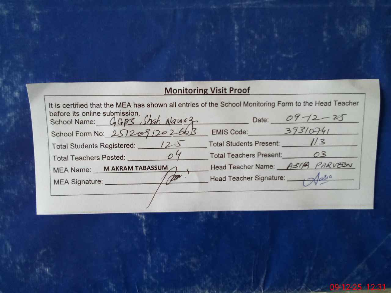 | EMIS Code: 39310741 | Name of School: GGPS SHAH NAWAZ | |||