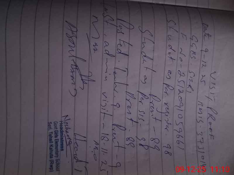 | Name: AM**** BI**** Designation: (School Headmaster's/Headmistress's) PST Phone/Cell Number: 03**** |