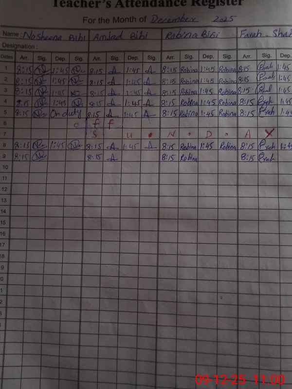 | Attendance Register | Head Teacher | MEA with School | Visit Proof |