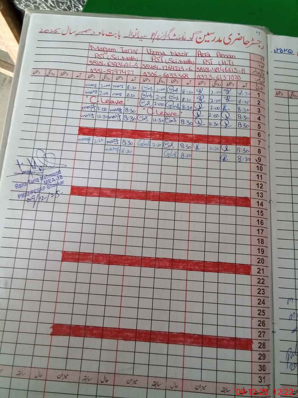 | Name: Az**** Am**** Designation: (School Headmaster's/Headmistress's) PST Phone/Cell Number: 03**** |