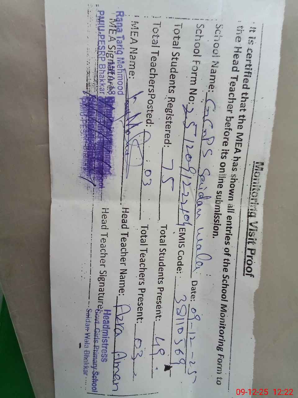 | EMIS Code: 38110569 | Name of School: GGPS SAIDAN WALA | |||