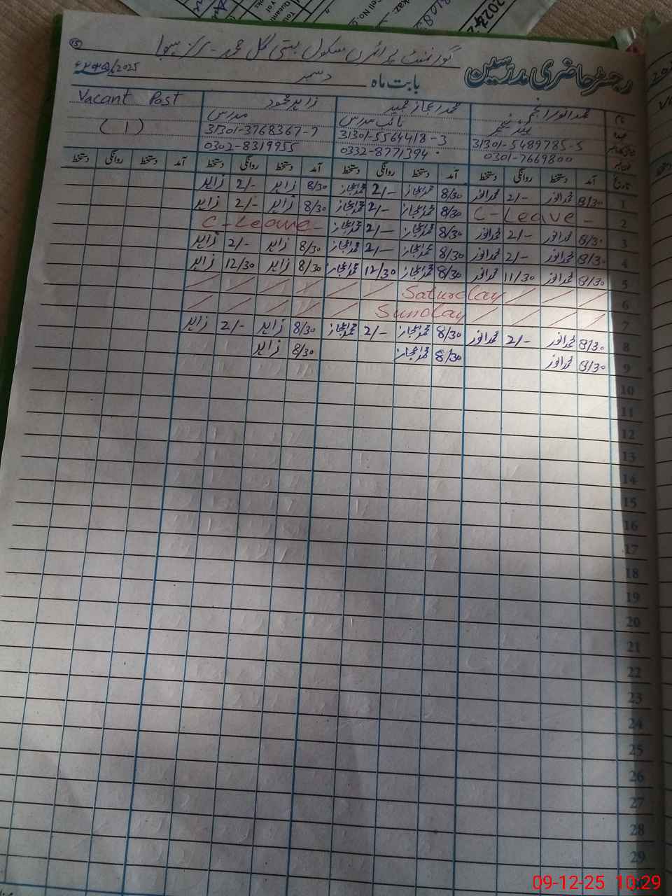 | CNIC | Full Name | Designation | R/C | Absence During Last Calender Month |