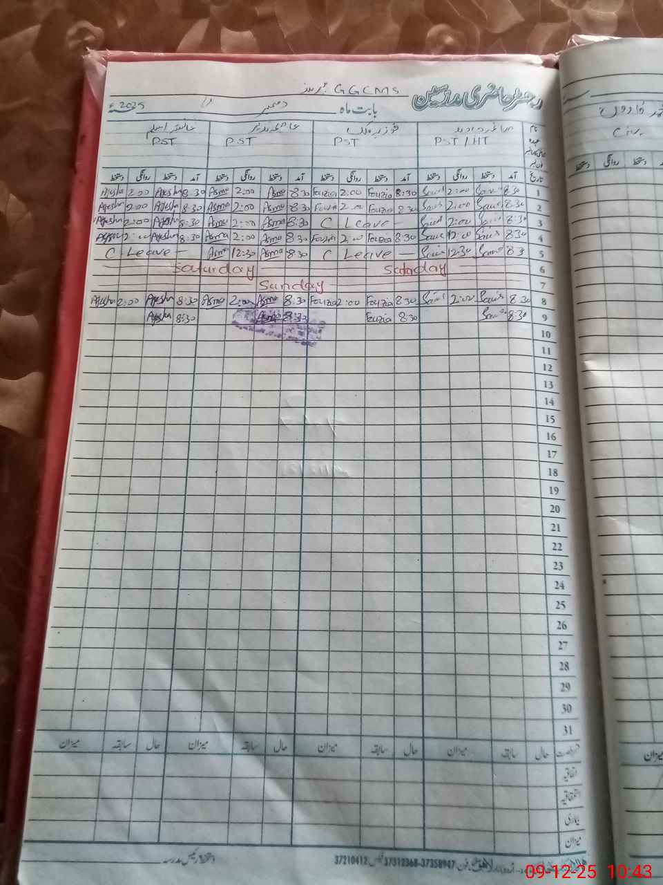 | CNIC | Full Name | Designation | R/C | Absence During Last Calender Month |