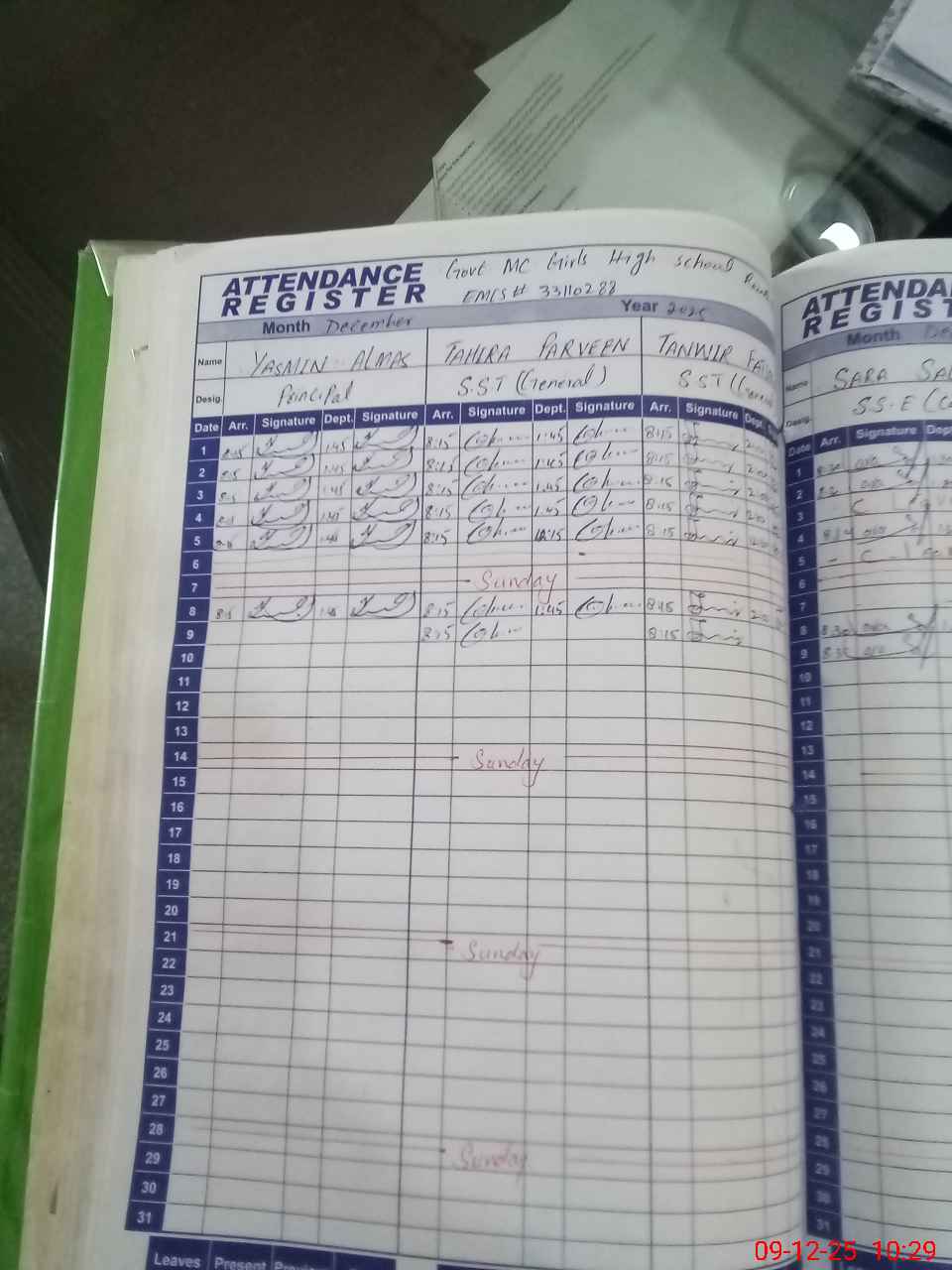 | 33**** | Us**** Ma**** | J C | Regular | 1 | 0 | 0 | 1 | 0 | 0 | 0 | 0 | 0 | Absent (Un-Authorized) |
