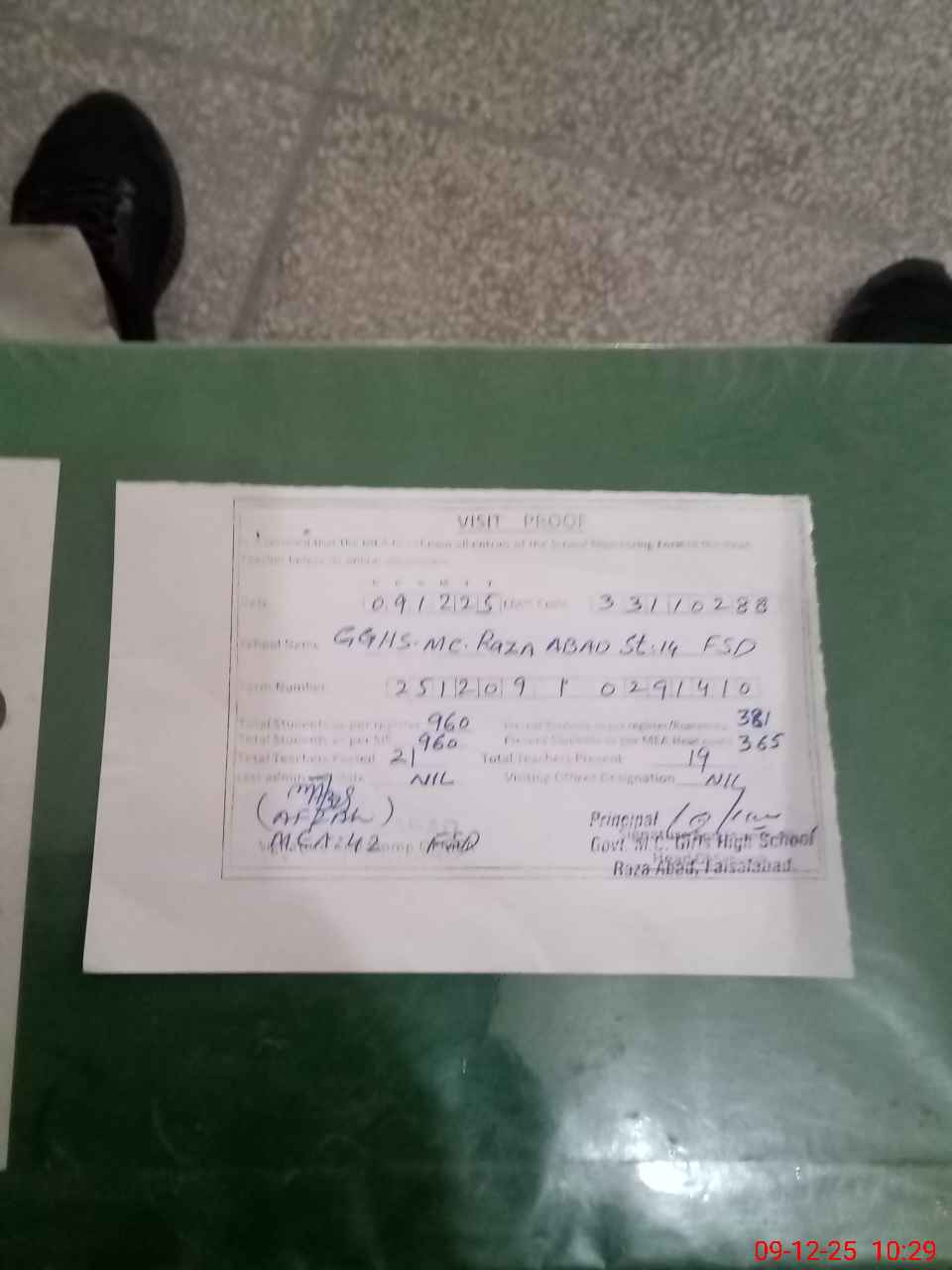 | EMIS Code: 33110288 | Name of School: GGHS MC RAZA ABAD STREET 14 FAISALABAD | |||